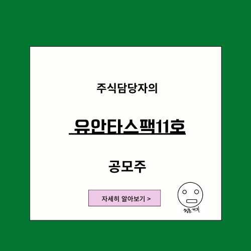 8월 22일 ~ 8월 23일 유안타스팩11호가가 청약 중이다! 늘 말씀드리는데 스팩 머랄까 속 없는 깡통입니다.. 꼭 주의하셔서 뇌동매매 하지 마시기 바랍니다! 참고로 스팩관련주 글은 내용이 쓸게 없어 대부분 비슷합니다. 이전 내용과 비슷하니 일정만 보시고 넘어가셔도 됩니다.