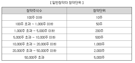균등 최소 청약금 : 20,000원 -> 1주당 2,000원