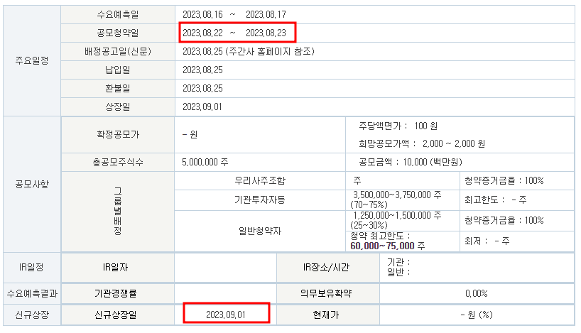 - 청약일일 23.08.21일 ~ 23.08.22일(2일)
